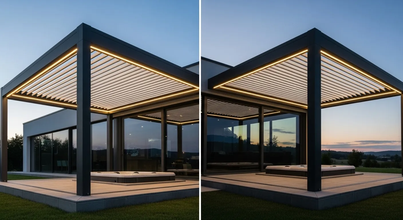 Bioklimatik pergola sistemleri ile doğal havalandırma. Modern tasarım ve fonksiyonel yapı bir arada.